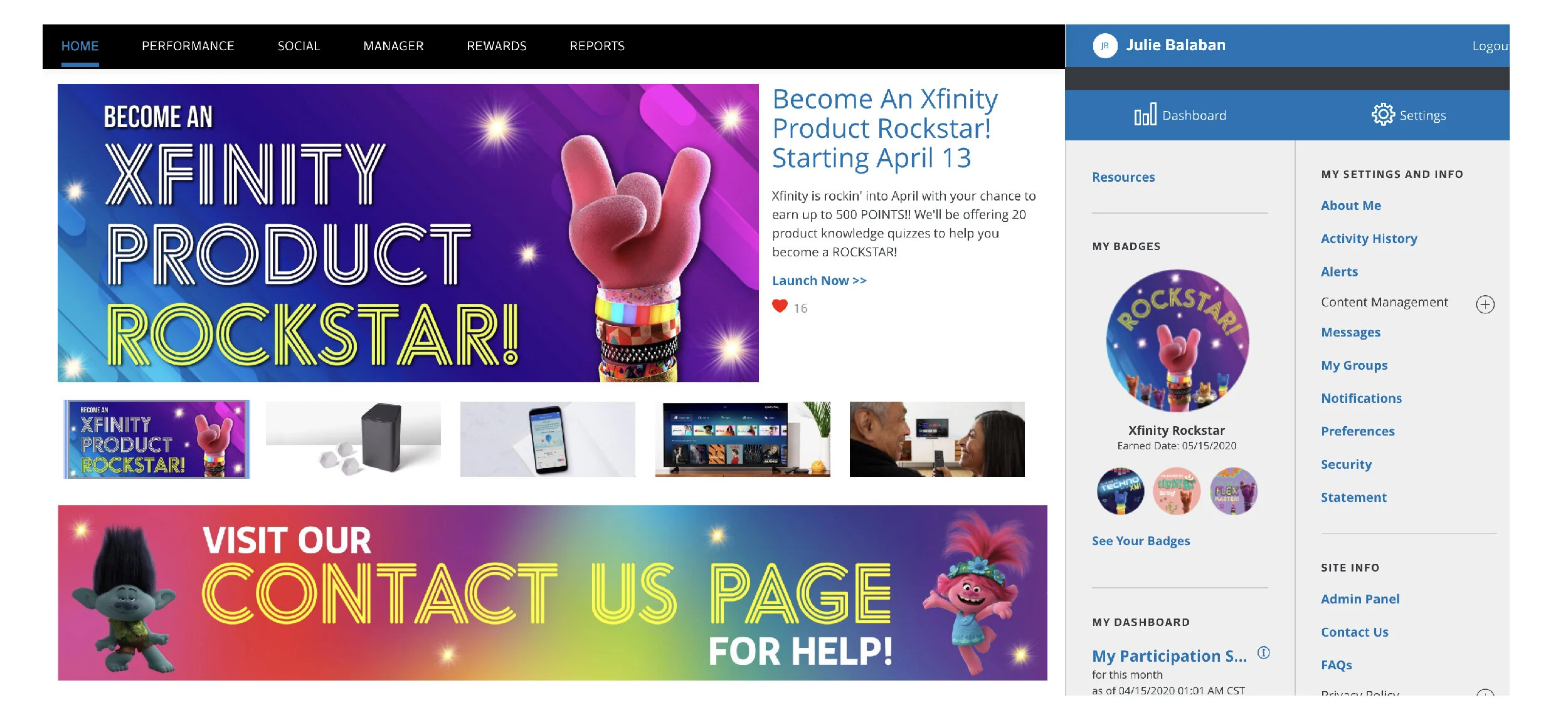 My team was tasked to create an exciting and impactful campaign, Xfinity Product Rockstar, to help sustain motivation, educate, and reinforce all Xfinity products. The campaign was built to drive excitement around the Premium Video on Demand (PVOD) release of Trolls World Tour.